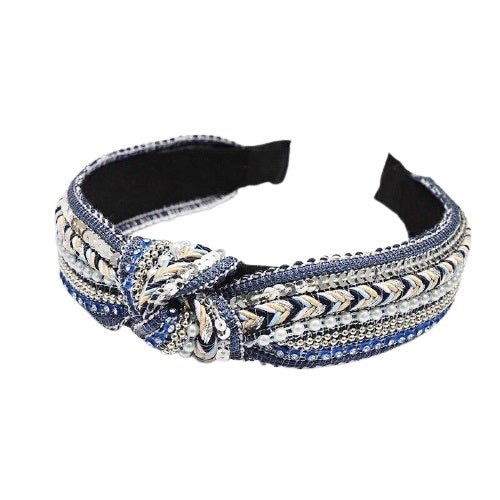 Serre tête bohème – broderies et perles en bleu : L’Accessoire Éthnique de vos Rêves