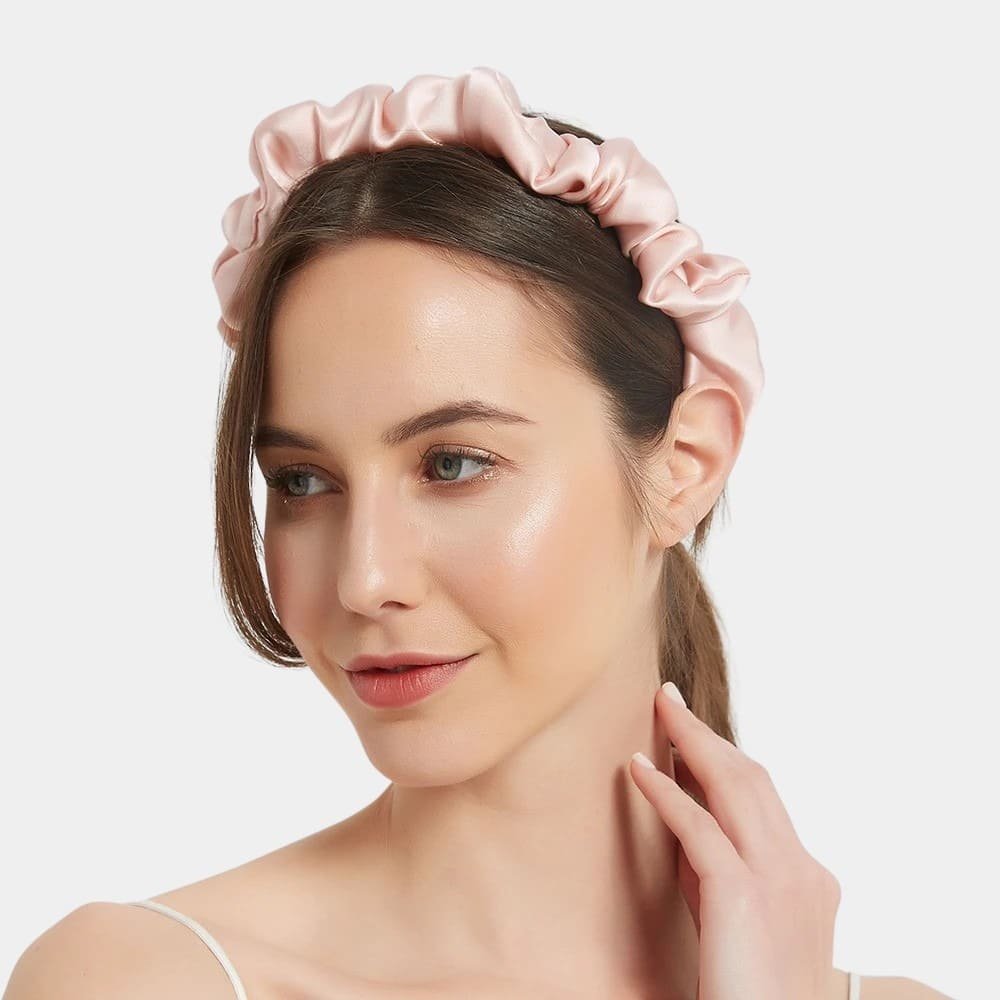 Serre-tête plissé rose clair en soie : L’Élégance Douce et Intemporelle