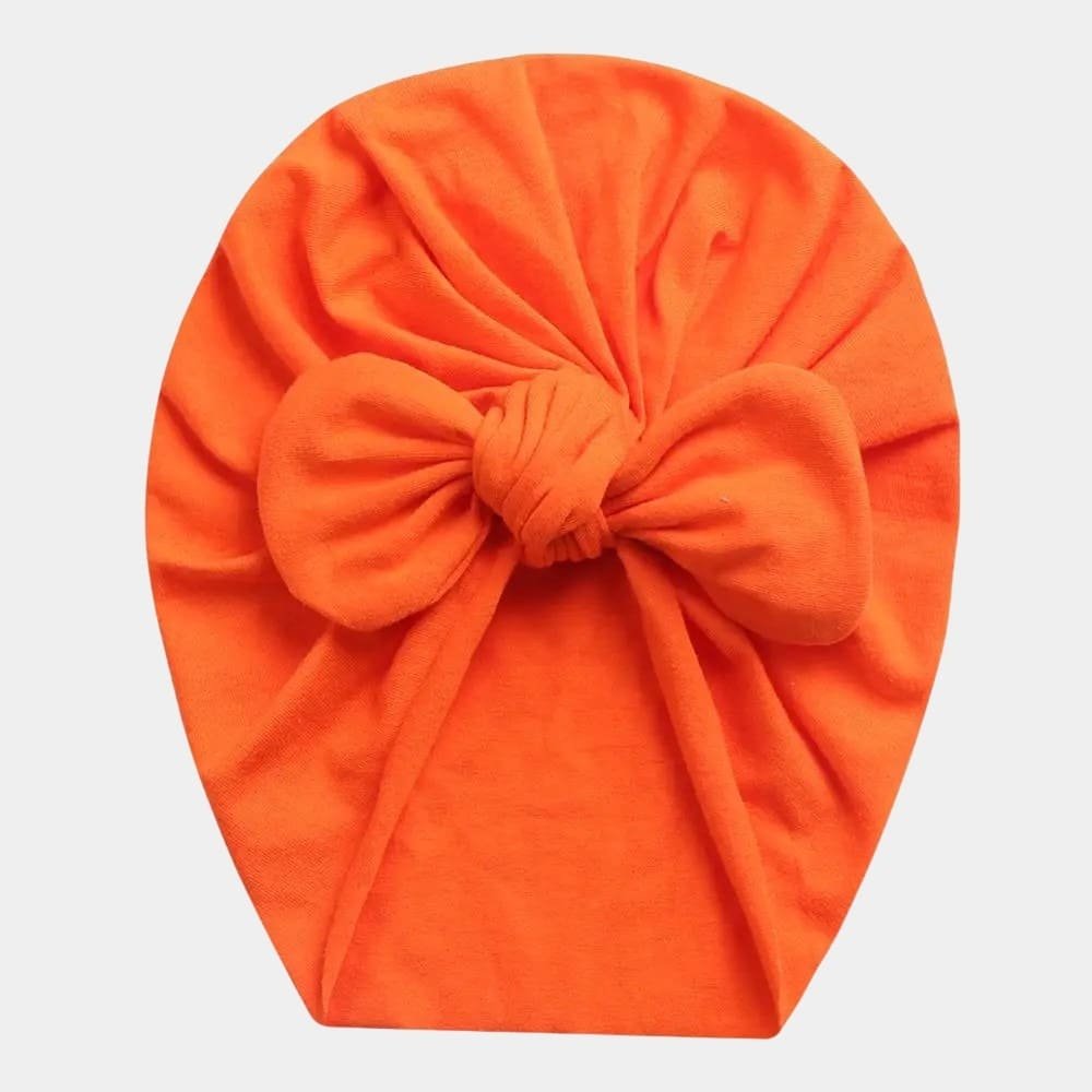 Turban bébé en coton orange avec nœud papillon : L’accessoire d’élégance irrésistible