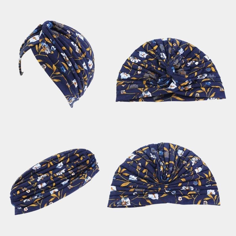 Turban bleu marine à fleurs : L’Élégance Botanique à Porter au Quotidien