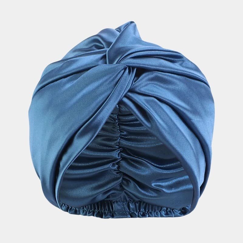 Turban en satin bleu acier : L’Élégance Protectrice pour Vos Cheveux